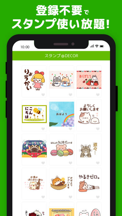 動物のキャラクターが描かれた、ゆるカワな素材が無料でダウンロードできるアプリ。挨拶などのメッセージが書かれているものが多く、LINEスタンプとしても気軽に利用できます。