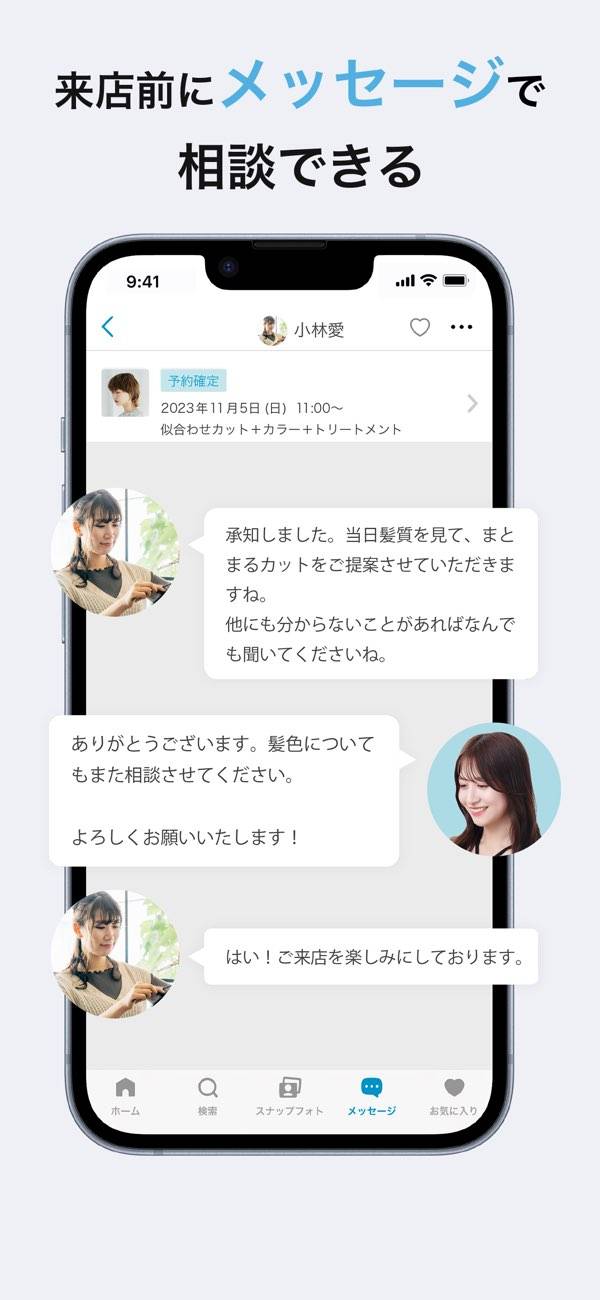 サロンスタッフと直接メッセージのやり取りができます。そのため、なりたいスタイルを事前に伝えておくことが可能。なりたい仕上がりとのズレを防ぎ、安心して施術を受けられます。