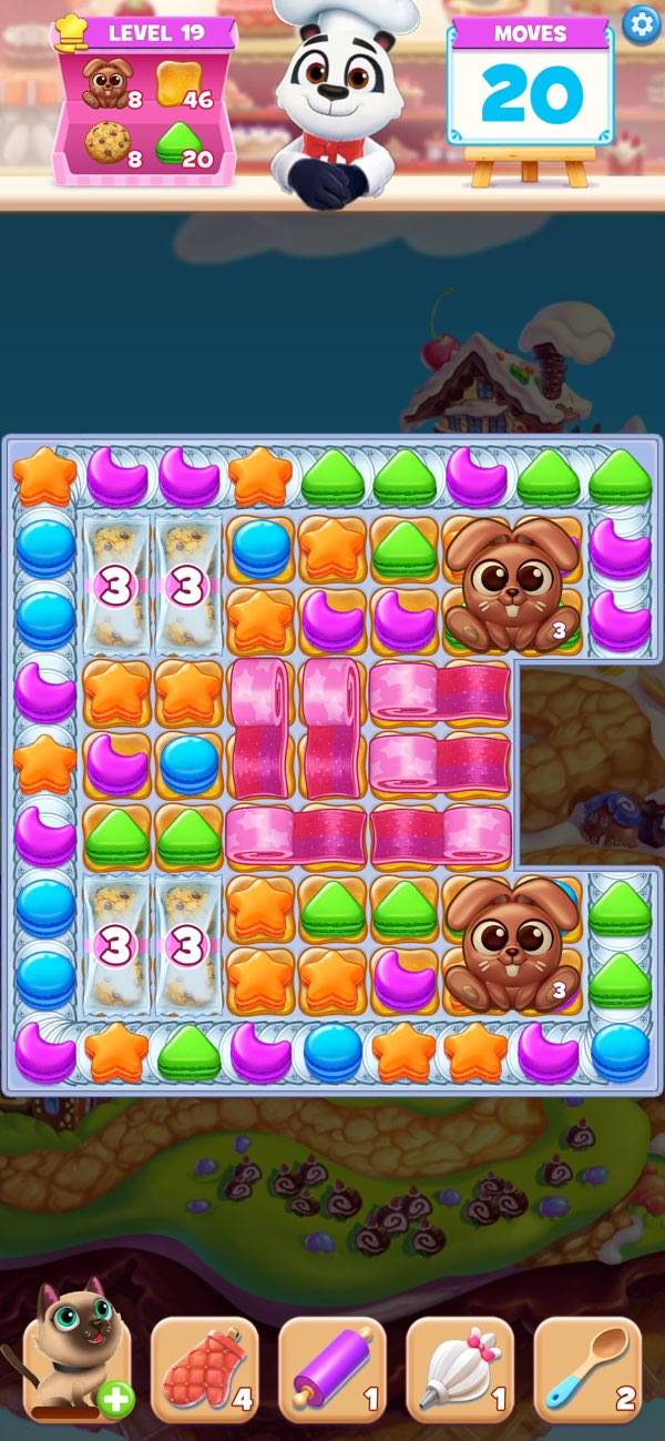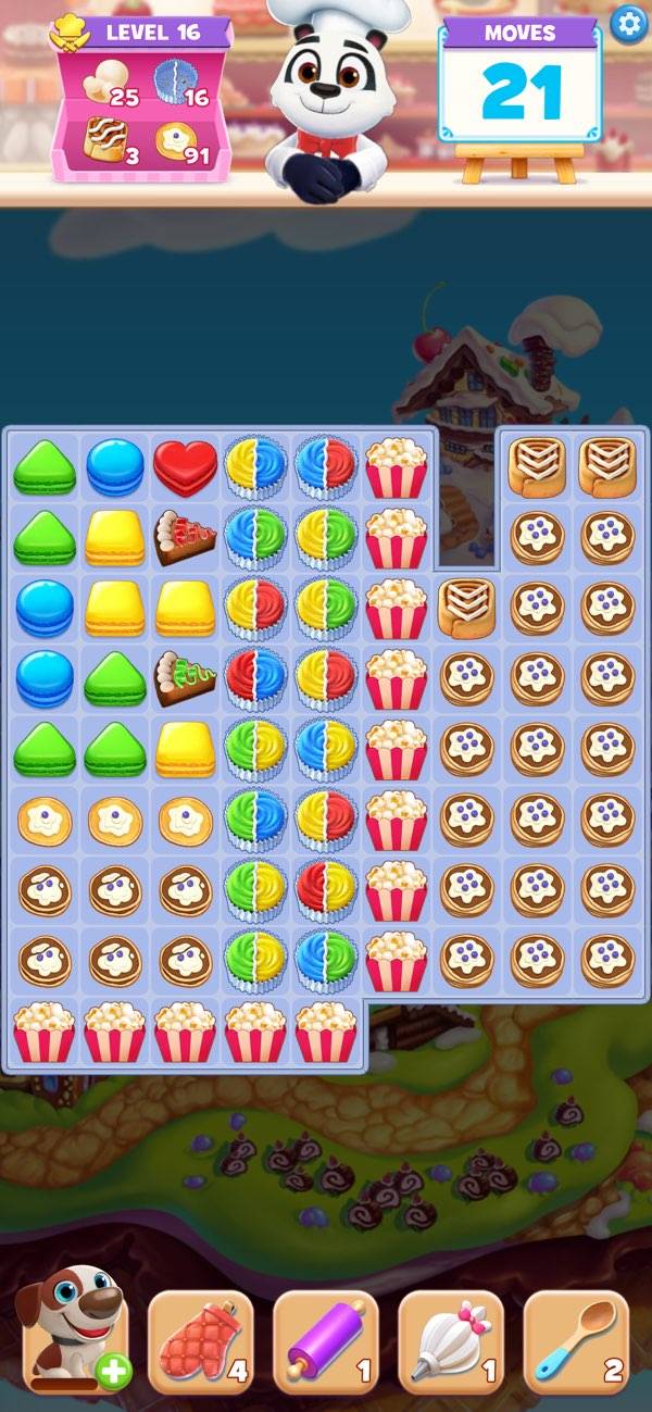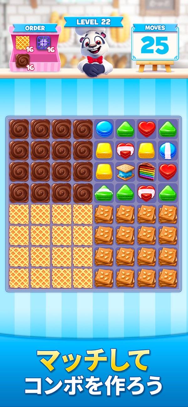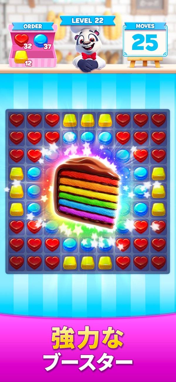 3マッチのスイーツパズル。カラフルなクッキーが沢山‼︎パズルをしながら材料を集めて色々なスイーツが完成するので楽しいです。自分的にクッキーが下に落ちる''タンタン''って音が心地良くハマっています。スイーツの絵が意外と凝っていたりして美味しそうだなぁ〜って思いながらやってます‼︎
