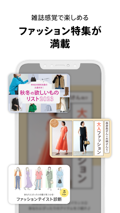 ショッピングモールやアウトレットでよく見る有名ブランドが集結しています。閲覧したアイテムをアプリが学習し、おすすめのアイテムを表示してくれるところが魅力。20~30代向けの商品がそろっています。