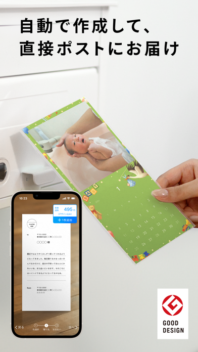 - スマホで撮った写真を選ぶだけで、成長の記録がはがきになる