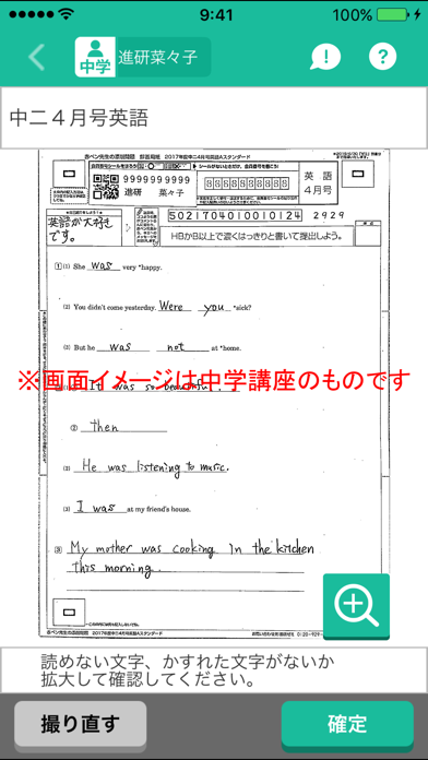 「進研ゼミ中学講座」、「進研ゼミ難関私立中高一貫講座」の受講者の方のためのアプリです。スマホで解答用紙を撮影し、そのまま提出することができてしまうんです。