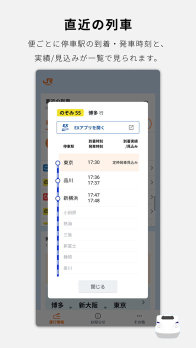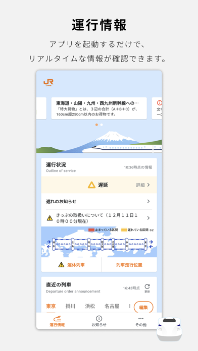 東海道・山陽新幹線の運行状況をリアルタイムで確認できます。遅延や運休の情報を素早く把握できるため、突然のトラブルにも対応しやすいでしょう。ネットで検索する手間が省けるので、駅までの移動時間にサッと情報を手に入れられます。