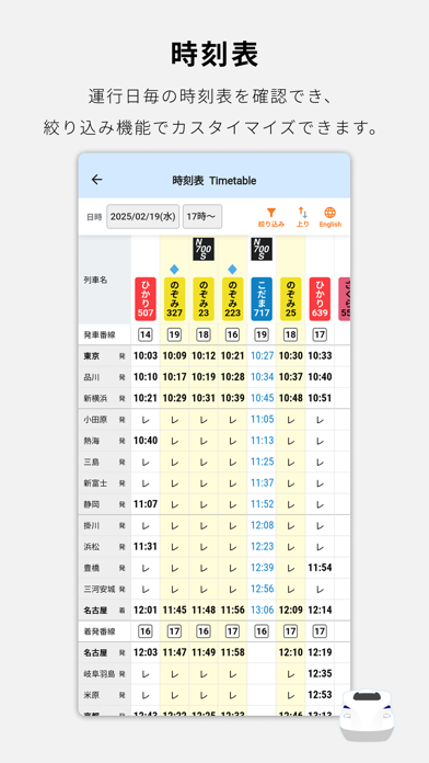 冊子型の時刻表のように詳細な列車情報を確認できます。時刻表の確認を紙からアプリへ移行したいと考えている人でも、仕様が変わる心配がいりません。それどころか列車種別での絞り込みができたり、常に最新の情報を得られたりと利便性が上がるでしょう。