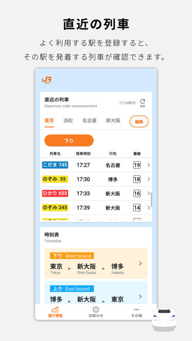 さらに直近の列車情報や詳細な時刻表もすぐに見つけられるため、出張や旅行の際に役立ちます。時刻表は、紙の時刻表に慣れている人でも使いやすいデザインです。