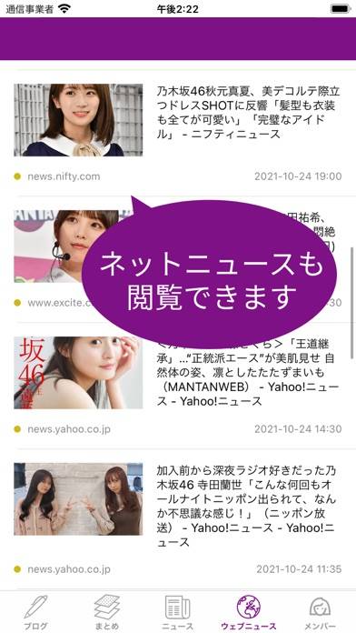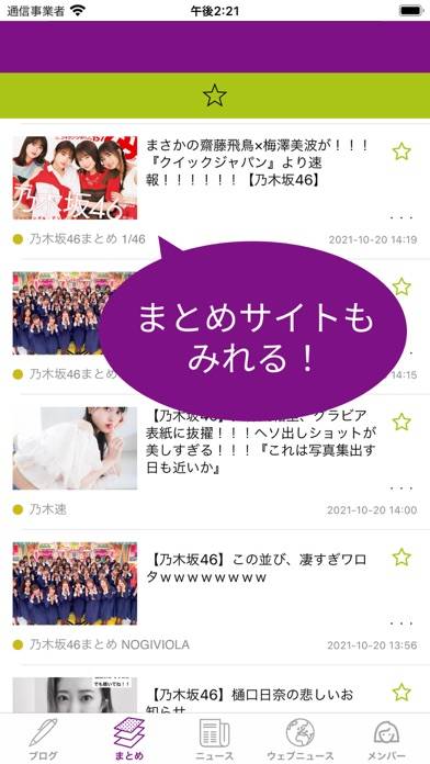 乃木坂の最新情報やブログに簡単にアクセスできます。「ブログ」からは各メンバーのブログ、「まとめ」からは乃木坂に関する最新情報を閲覧可能。乃木坂に関するあらゆる情報がまとめられているため、いちいち検索をして情報を探す手間が省けます。
