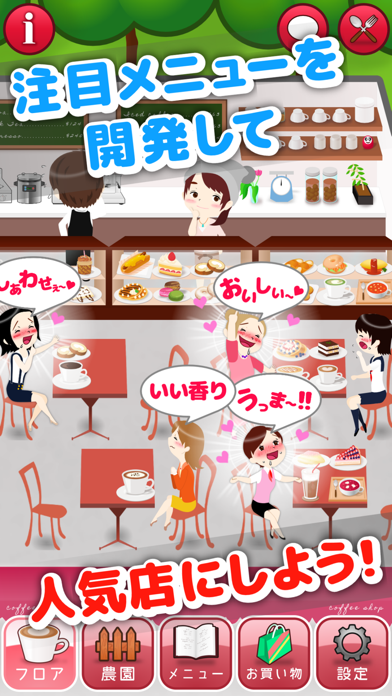 - お店を大きくするとミニストーリーが展開。恋愛イベントも楽しめる
