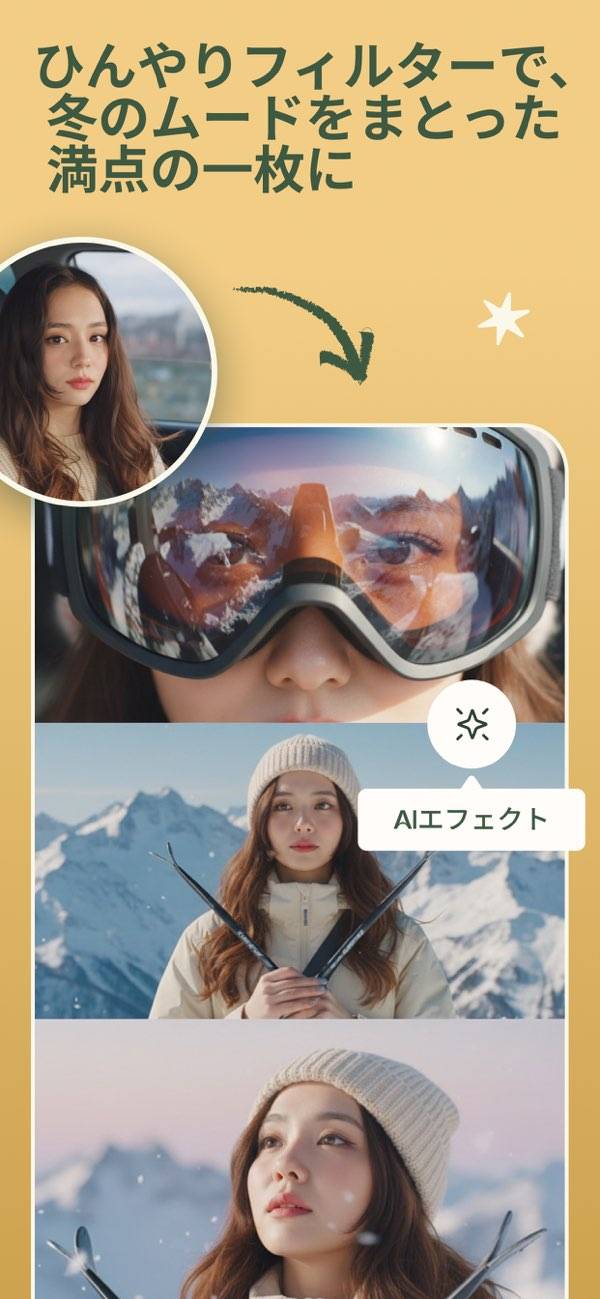 - ツールやフィルター、ステッカーなど便利機能が豊富な写真加工アプリ