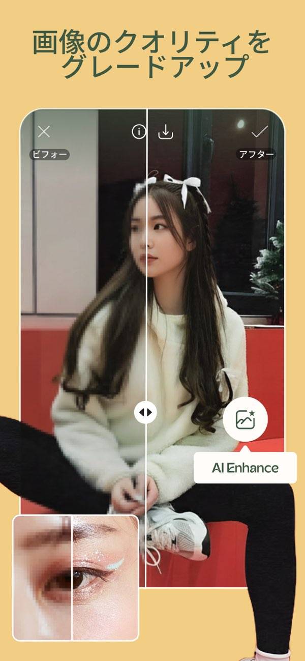 アルバムの写真を加工する際に使っています。フィルターの種類も豊富で、目の大きさから肌の加工もできるので、助かってます。