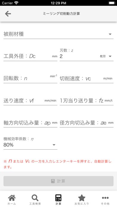 ミーリング加工・穴あけ加工の切削動力を簡単に計算。切削力を正確に算出することで、作業者は適切な工具選択と作業計画を立てられます。工具の使用に必要な力を事前に知ることで、安全かつ効率的な作業ができます。
