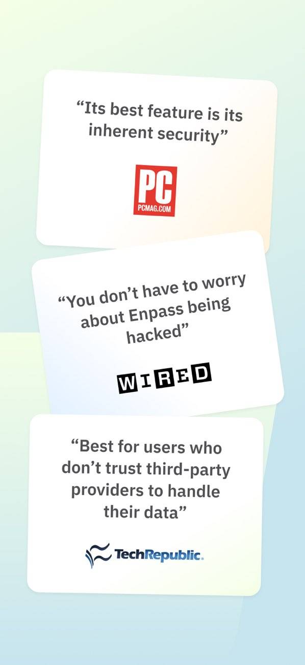 ログイン情報や口座情報、ライセンス情報などを一元管理できます。マスターパスワードを設定するだけで、あなたの重要な情報を守ってくれます。情報はアプリ内で厳重に保管され、アプリのサーバーには一切送られません。