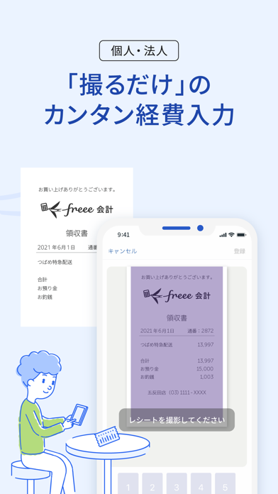 - レシートの読み取りや口座との連携で、仕訳を自動で登録できる