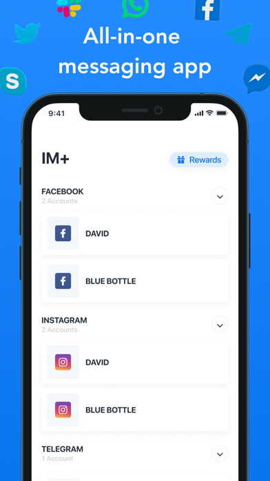 10種類以上のソーシャルメディアに対応したメッセージアプリ。集約できるのはFacebook・Instagram・Messenger・X(旧Twitter)・Gmail・ChatGPTなど多種多様。各種ツールの通知の受け取りから確認・返信までを本アプリ1つで行えます。