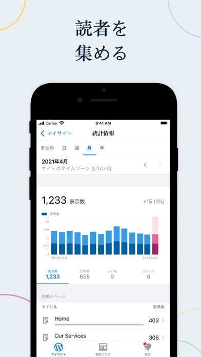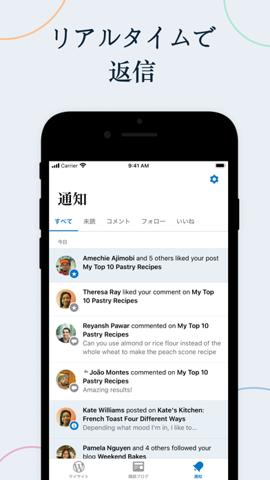 - 通知機能でサイトの反応をチェック。コメントにリアルタイムで返信可能