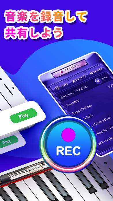 スマホでいつでもどこでも演奏できる、ピアノアプリです。自由に弾いてもいいですし、練習曲に合わせて学びながら弾くことも可能。音色を好きな楽器に変えるなどして、いろんな演奏ができます。上達してきたら、演奏を録音して公開するのもいいですね。