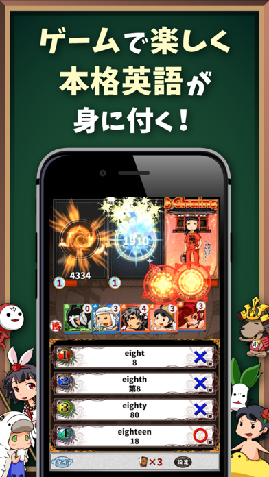 クイズに正解して敵を倒していきましょう。英単語・英文法・英会話・リスニング・発音といった基本的な英語の要素を、ゲームを通じて自然と身につけられます。モチベーションを保ちながら、自然と英語力が伸びていくはずです。