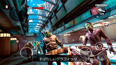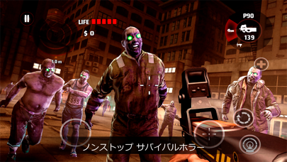 このアプリは1人称視点のガンシューティングゲームです。画面に現れるゾンビを次々と撃ち倒しミッションをクリアしていきます。
