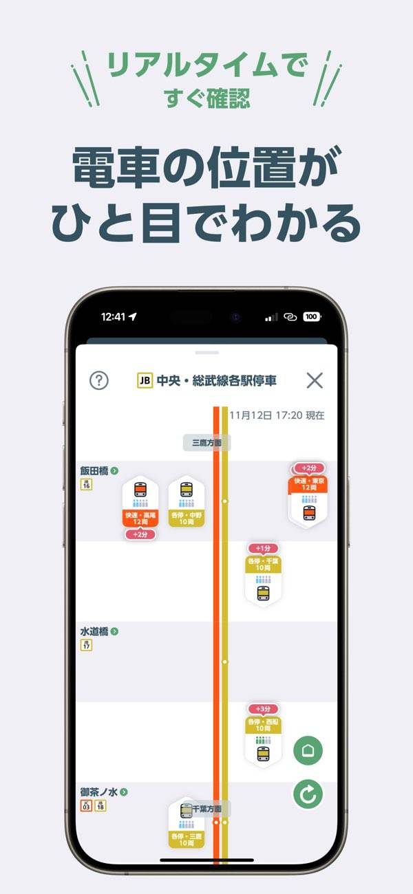 - 山手線をはじめ主要路線の走行位置をリアルタイムで確認できる
