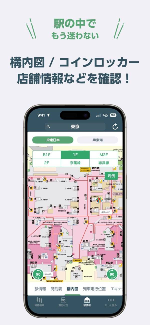 - 構内図やコインロッカーの空き情報まで見られて駅で迷わない