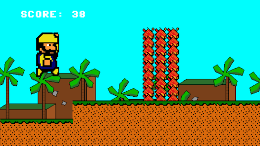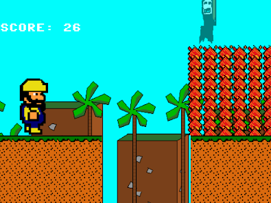 そんなパクリ観満載のゲームですが、内容は本家にも負けない充分に楽しむことができるものになっています。主人公のジャンプが異常なまでに低く、目の前に現れる落とし穴を超えることさえ困難。飛び移る足場に届くか届かないか、そんなギリギリでのプレイはとってもスリリング。緊張感溢れるプレイが楽しめそうです。