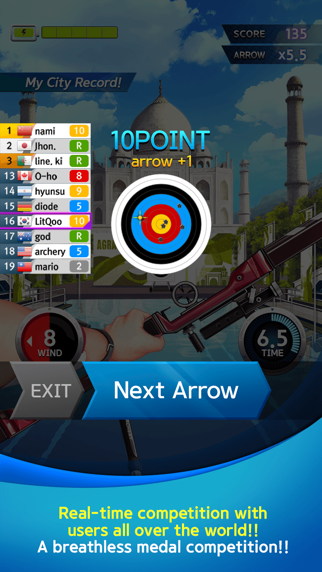 世界中のプレイヤーと競える本格的なアーチェリーゲームです。弓矢を引き、照準を定め、風の向きや強さまで考慮したリアルさもゲームの魅力です。