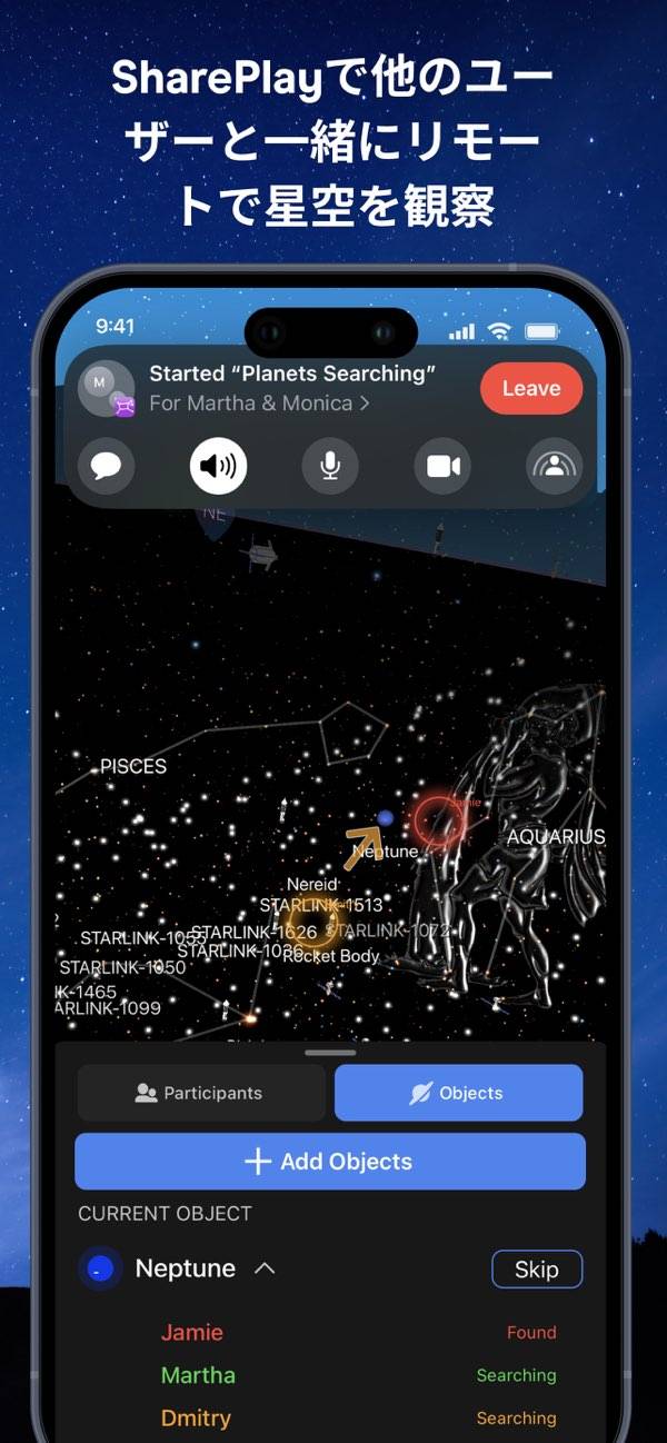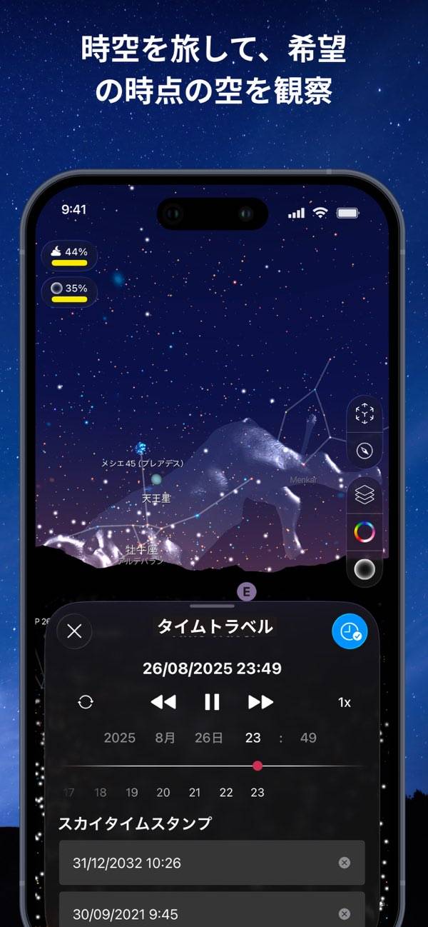 プラネタリウムのような体験ができる星座版アプリ。スマホを空にかざせば、コンパス使った機能で360°星座が見れて、下にかざせば日本の裏側の星座も見る事が可能。アプリ内にあるヒーリングミュージックを一緒に聞けば、大都会にいながら神秘的な体験ができます。このアプリで天体観測してみては?