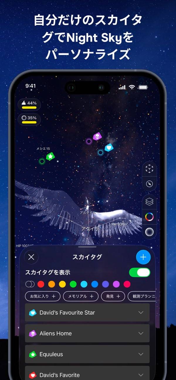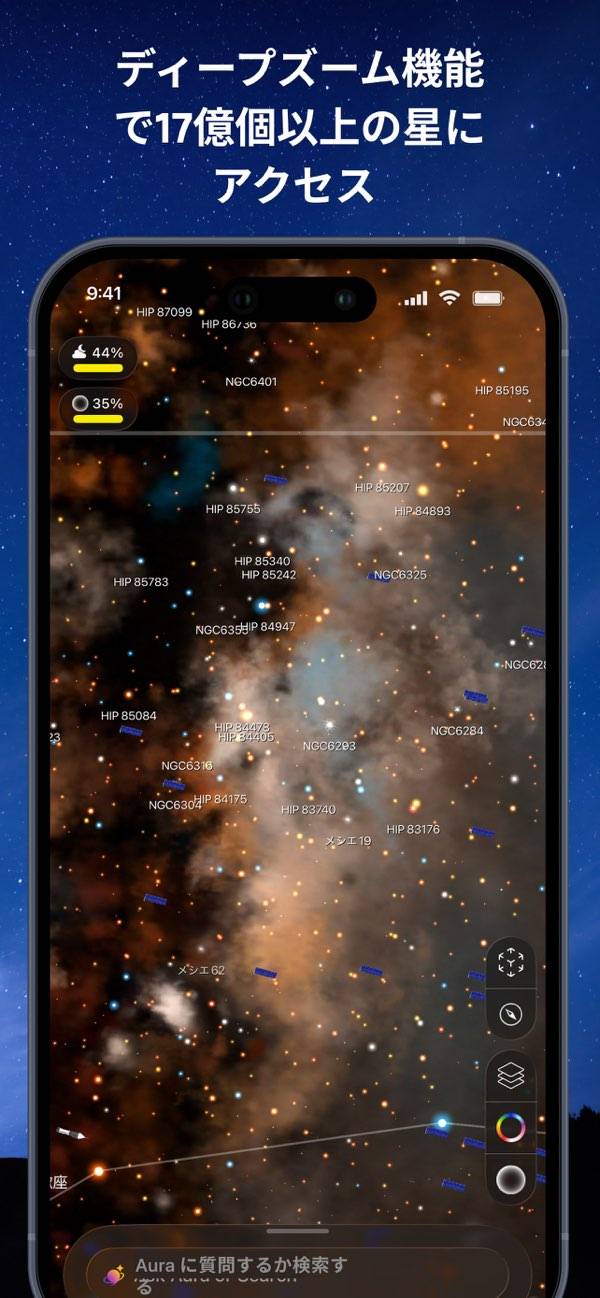 これは皆さん絶対入れて置くべきです❗️素敵です。プラネタリウムを持ち歩ける感覚。ピンチインで地球?を表示?こんなに人工衛星が回ってるとか!白鳥座のデネブはここだ?自分が宇宙の一部だと久々に思った?