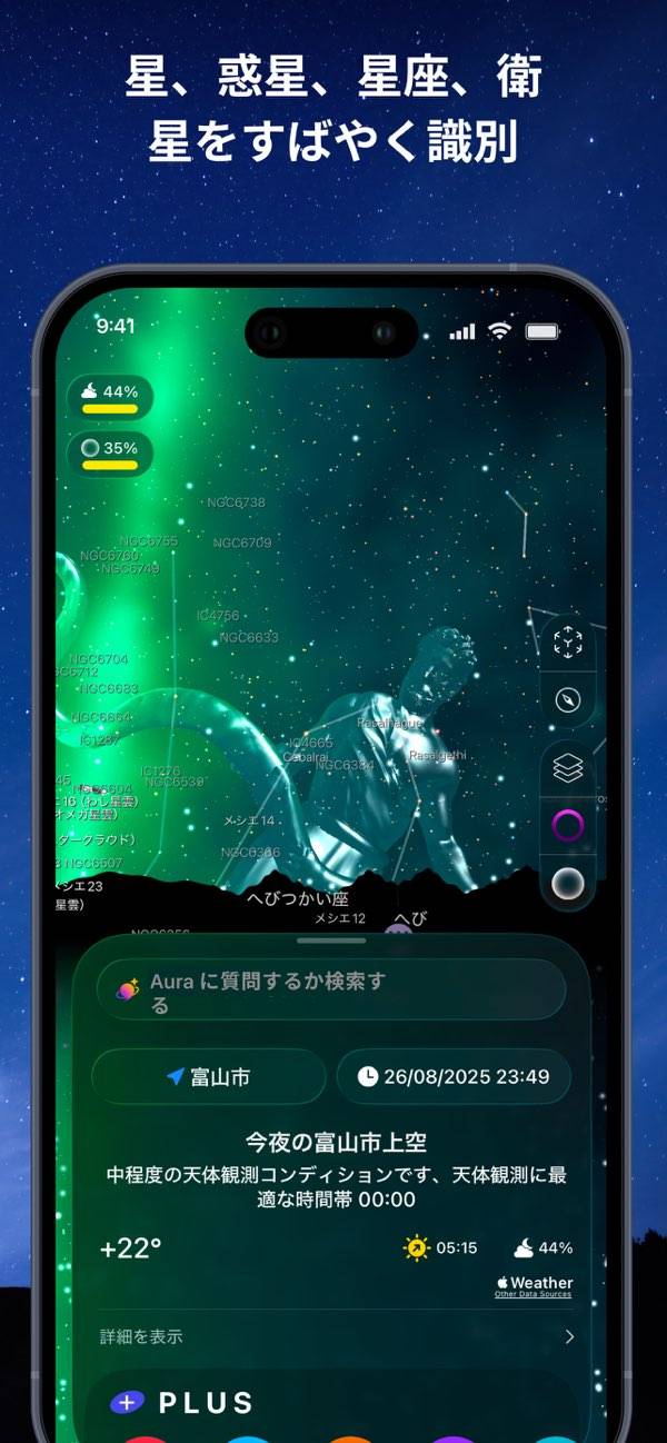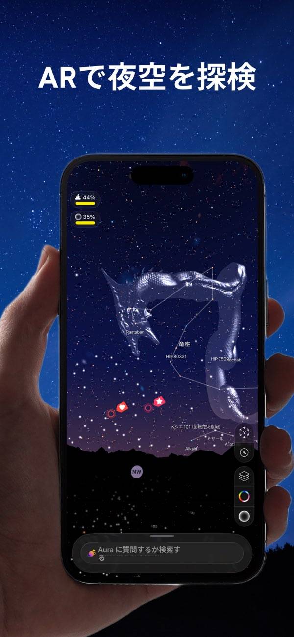 コンパス機能とれんけいしているので、かざすだけでそこに何の星があるのかがわかるんです!