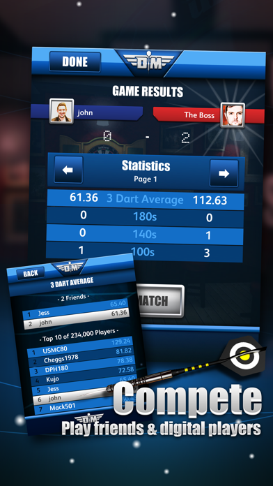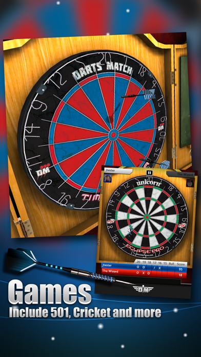 - 501やクリケットなど、おなじみのルールを選択して遊べる