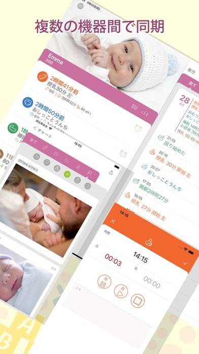 また複数の端末で同期も可能。夫婦間で赤ちゃんの情報共有ができます。