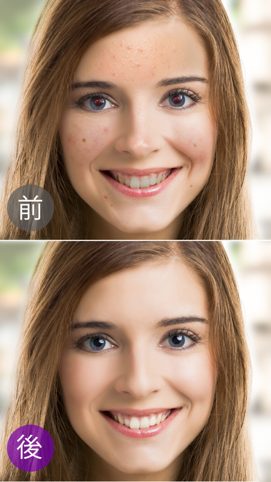 このアプリは、お肌の気になる部分を自動でキレイにしてくれます。数十秒で、白くもちもちなお肌に早変わりですよ。