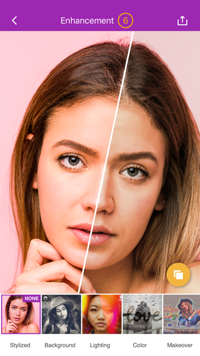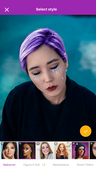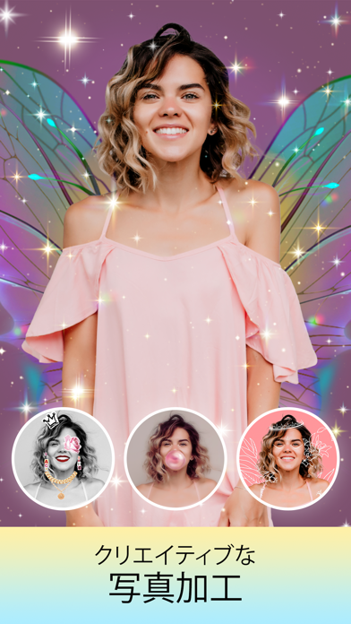 ニキビやしわ、目の輪郭、歯の色まで自動で修正してくれます。写真を選択すると顔を自動検出し、「肌のメイクアップ」「目のメイクアップ」「しわのばし」など7種類の中から、必要な加工を施してくれます。自信を持ってSNSへ投稿できますよ。