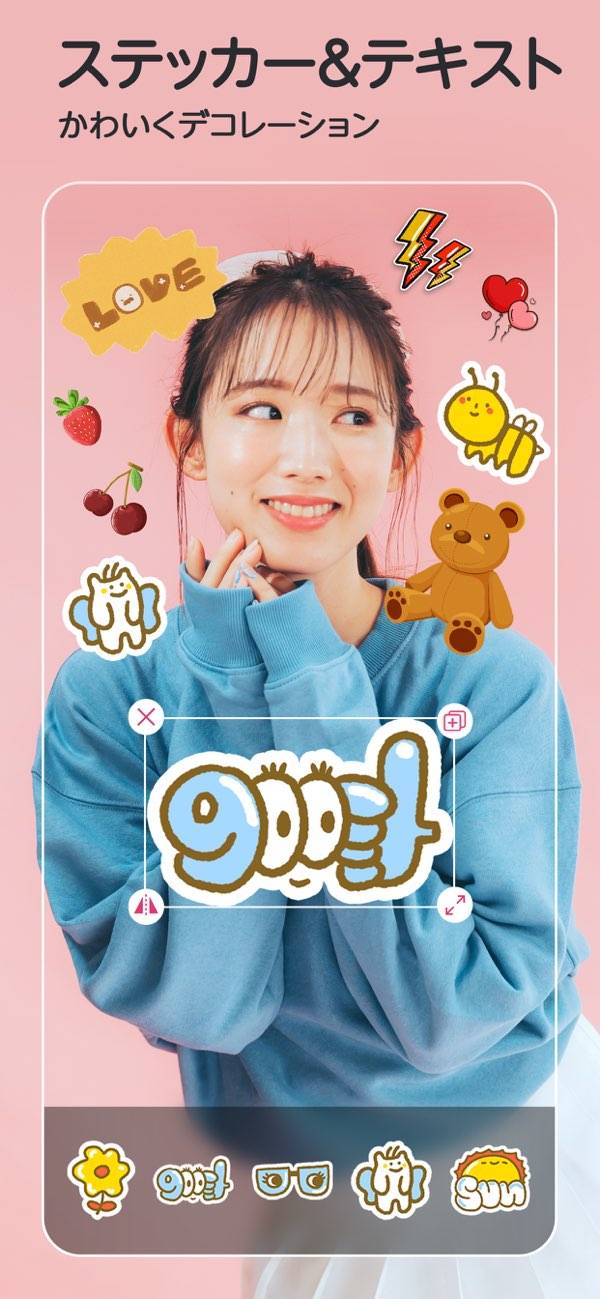 | 装飾機能 | テンプレート、ステッカー、テキスト、フレーム、ブラシなど |