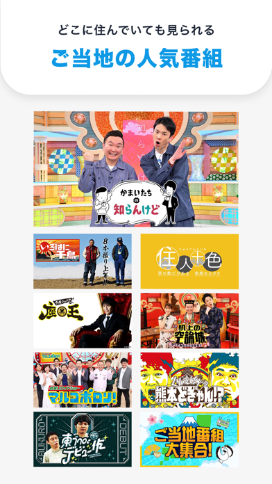 民放のテレビで放送された番組を放送終了後にも配信で視聴することのできるアプリです。見逃し配信を目的に使っても十分素晴らしいアプリですが、個人的に本当にありがたいのが、地方のテレビ局の番組を配信してくれているところです。地元を離れる前までに見慣れていた地方の長寿番組やローカルタレントの番組を、全く別の地方に住んでいながら無料で見続けることができるのは、涙が出るほどに嬉しいです。実に重宝しています。ただ一つ苦言を呈するならば、流れるCMの種類が異様に少ないことでしょうか。