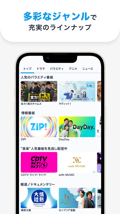 民放局のTV番組を、放送から1週間見逃し視聴できるアプリ。日本テレビ・テレビ朝日・TBS・テレビ東京・フジテレビ系列の番組を、ドラマやバラエティを中心に配信しています。