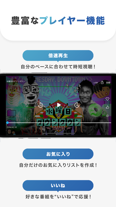 民放局のTV番組を、放送から1週間見逃し視聴できるアプリ。日本テレビ・テレビ朝日・TBS・テレビ東京・フジテレビ系列の番組を、ドラマやバラエティを中心に配信しています。