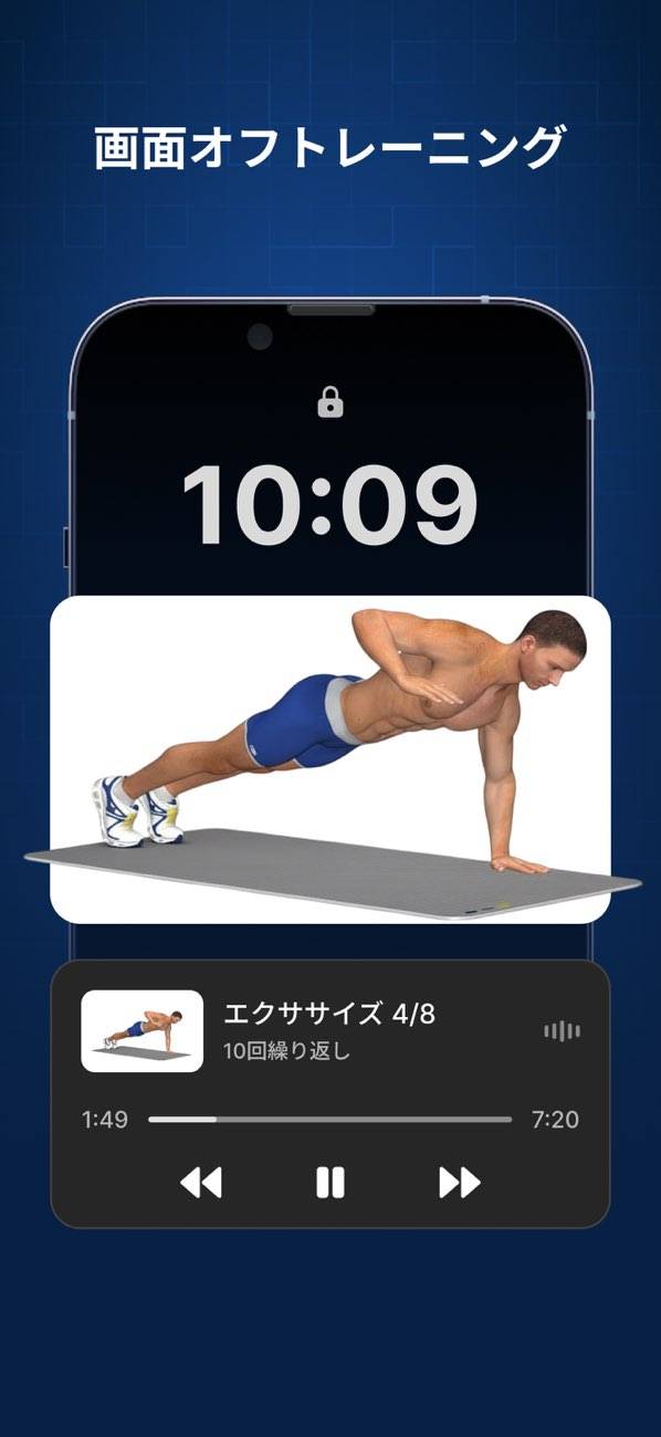自宅にいながらも効果的で継続したトレーニングをしたいという人に役立つアプリ。わかりやすい動画と音声の指示に従うだけでトレーニングがサクサク進みます。回数を数えてくれたりインターバルの時間を測ってくれるので自分はトレーニングだけに集中できます。