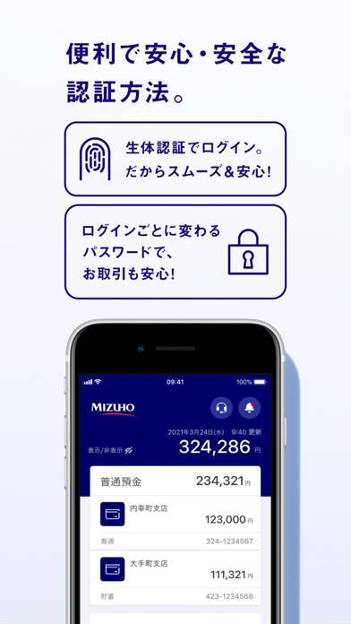 - スムーズな生体認証で安心のモバイルバンキング