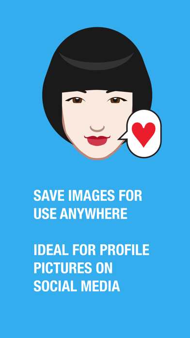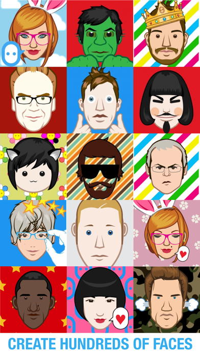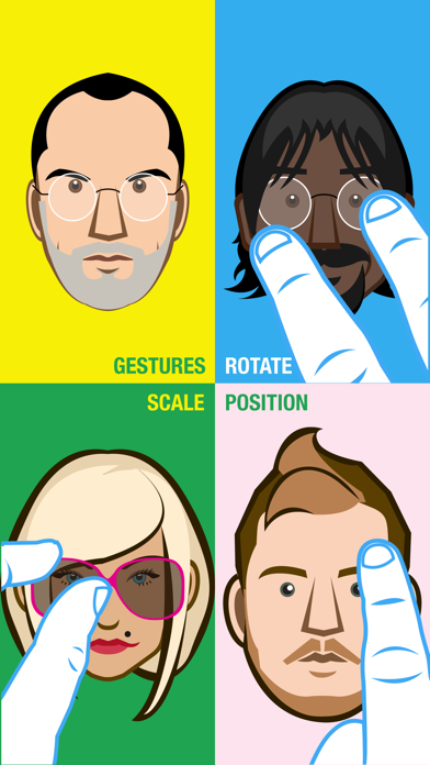 スライド、ピンチイン・アウト操作でアバターを作成するアプリです。直感的な操作でサイズ調整や位置調整を行えるのが特徴。輪郭や目など顔パーツの種類はもちろん、帽子やメガネなど、ユニークな装飾パーツも豊富にそろっています。