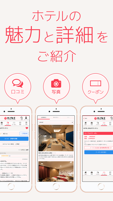 ホテルをお得に利用できるクーポンも配信中。本アプリを使えば、ホテルの検索から予約までがスムーズにできます。