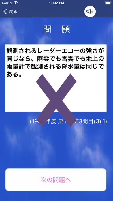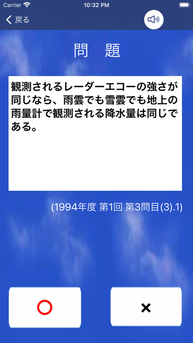 気象予報士試験の過去問をスキマ時間に勉強できるアプリです。2,000問以上の過去問を収録しており、すべて○×形式で回答するタイプ。○×形式なので、1問1問サクサクを短時間で解いていけます。