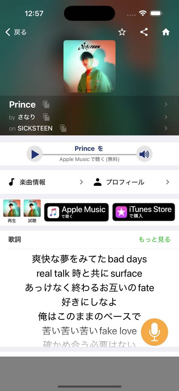 気になった歌詞を検索出来るアプリ♪