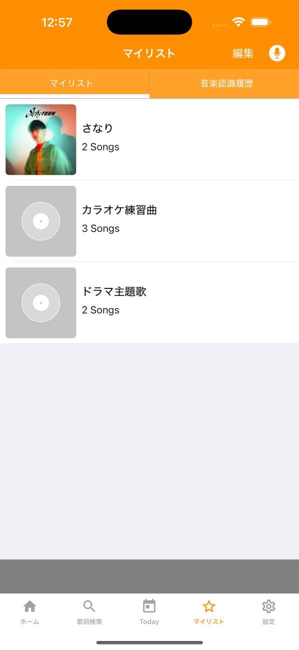画面下の「マイリスト」をタップし、「音楽認識履歴」を開くと、これまで検索した楽曲を再度確認できます。