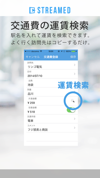 領収書をカメラで撮ってデータ化できるアプリです。領収書をチェックしながらPCに手入力する手間を省けます。交通費の運賃検索機能もついており、営業などで外回りが多いユーザーにも便利。