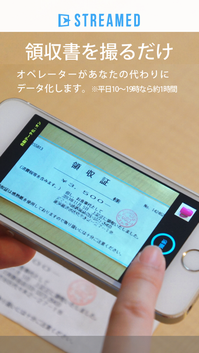 領収書をアプリのカメラで撮ると、オペレーターが手入力してくれます。カメラの向きは縦でも横でも可能です。印字されたレシートはもちろん、手書きの領収書のデータ化にも対応。手間のかかる大量の領収書を管理したい人にぴったりでしょう。