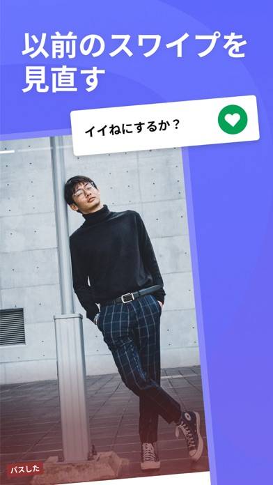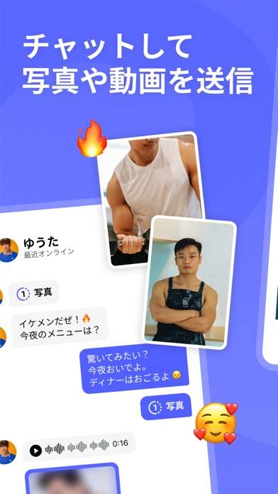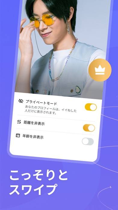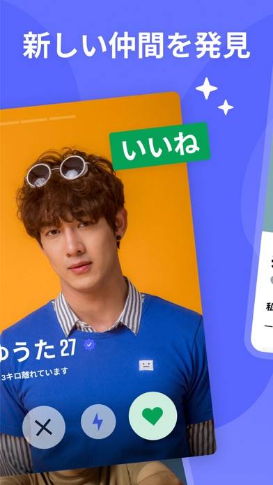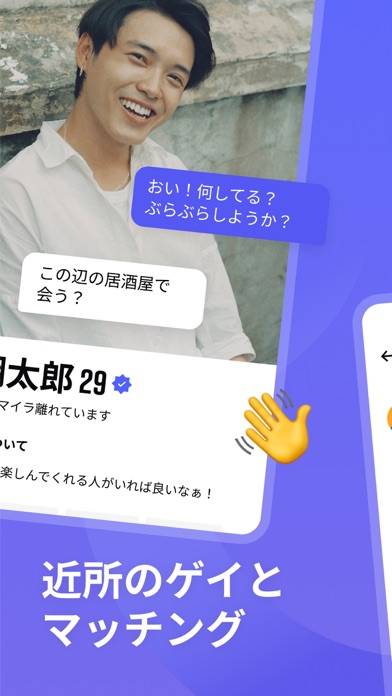 簡単操作で理想の相手を探すことができる、ゲイ専用のマッチングアプリです。左右にスワイプして「いいね」または「パス」を選択できる手軽さが魅力。