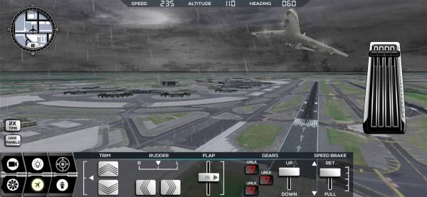 本作は飛行機を操縦するリアルなフライトシミュレーターアプリです。3DCGの飛行機モデルを滑走路から離陸させるところからプレイは始まります。美しく飛ぶには風向きを考慮に入れながら、出来るだけ真っすぐに滑走路を走らせる必要があります。