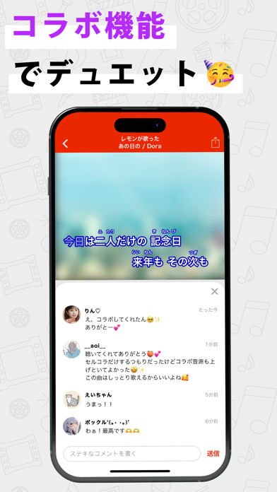 - 歌声は録音してシェアできる。ほかユーザーの歌を聴いてもOK