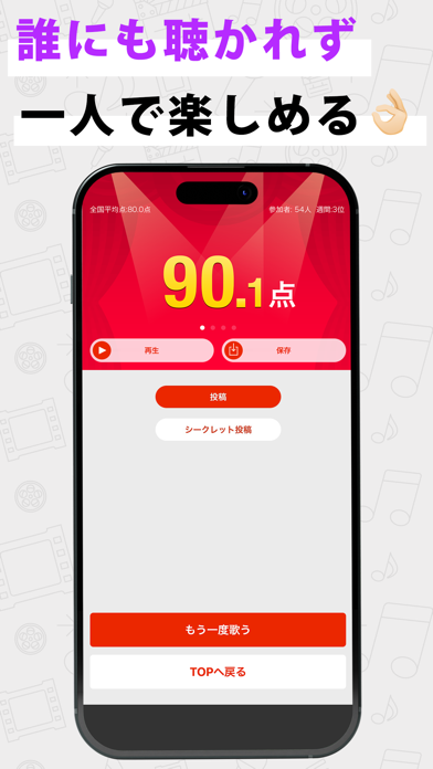 - 音程の一致率で採点してくれる。全国のユーザーと競えるランキングも