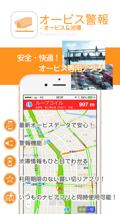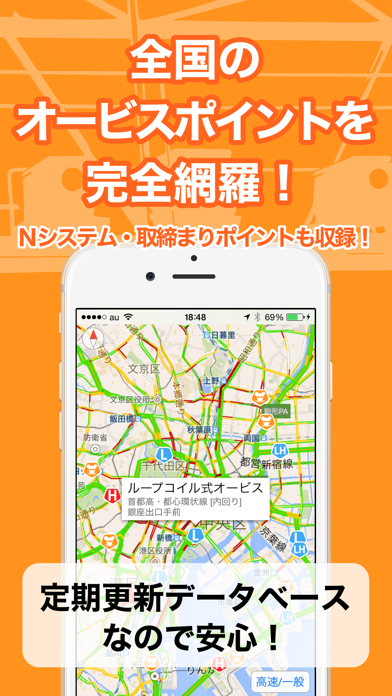 - 全国のオービスや取締りポイントを音声で警告してくれるから見逃さない
